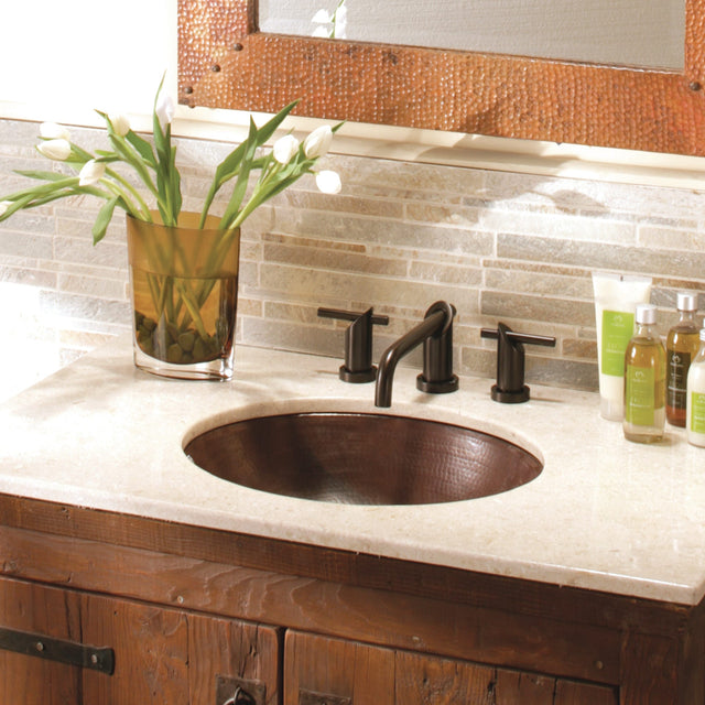 Living finish that will patina over time Constructed of 18-gauge hand-hammered recycled copper Oval basin couples functionality with aesthetic appeal Undermount installation creates an integrated look Hand-hammered surface provides beautiful texture and visual impact 1.5-inch drain opening Copper's natural antimicrobial properties help keep your sink clean UPC/cUPC compliant Covered under Native Trails limited lifetime warranty Due to their handcrafted nature, no two products will be exactly the same and may vary in finish, texture and other details