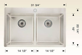 Kitchen Drop In Sink 31 3/4" X 20 1/4" X 9" Bosco Builder Series #T208026