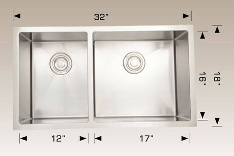 Kitchen Sink 32 " X 18" X 10" Bosco Deluxe Series #203318m