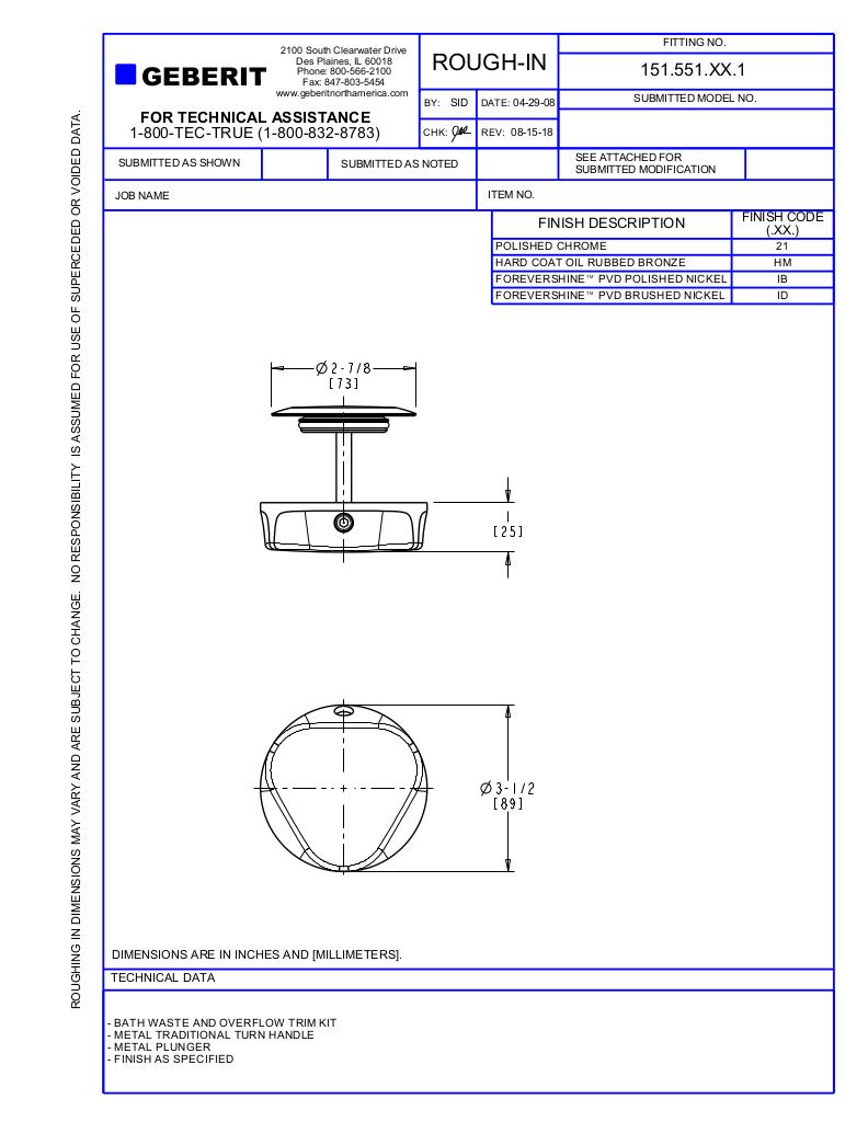 - Includes rough-in piping (select models) with actuation cable, drain shoe, overflow housing, decorative trim (complete units only), installation tools, and mounting hardware