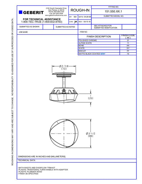 TURNCONTROL BATH WASTE AND OVERFLOW