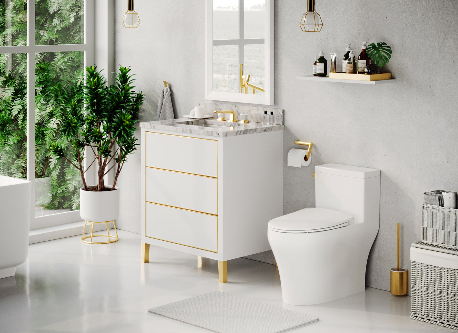 A premium soft-close, quick-release toilet seat and Polished Chrome trip lever are included.