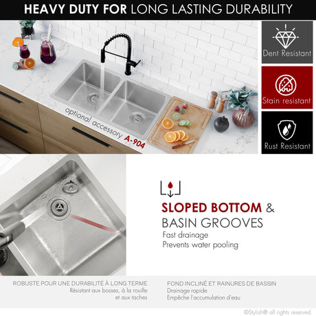 STYLISH 27 inch Single Bowl Undermount and Drop-in Stainless Steel Kitchen Sink