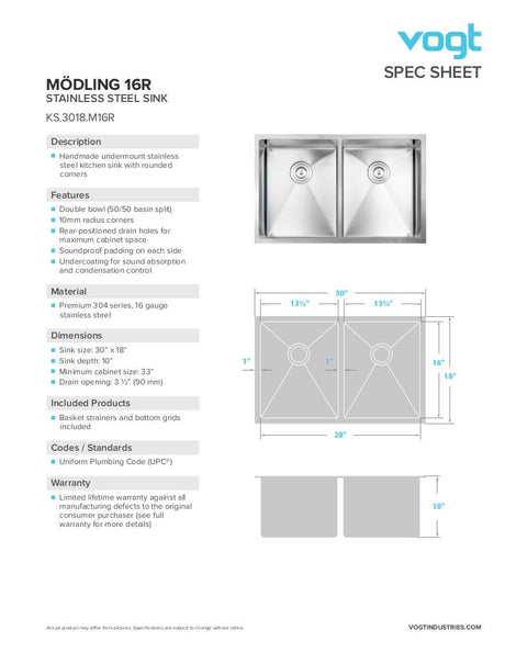STYLISH 31 inch Double Bowl Undermount Stainless Steel Kitchen Sink