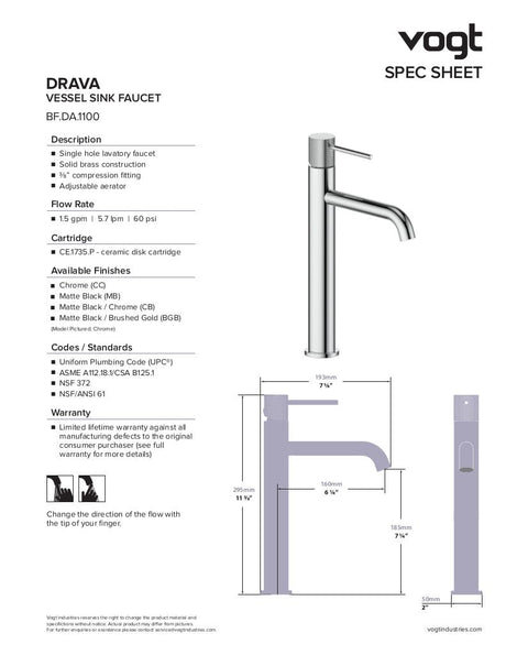 DRAVA VESSEL SINK LAVATORY FAUCET