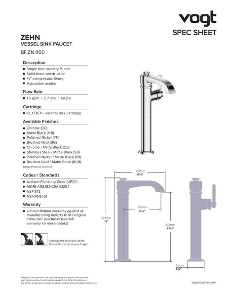 ZEHN VESSEL SINK LAVATORY FAUCET