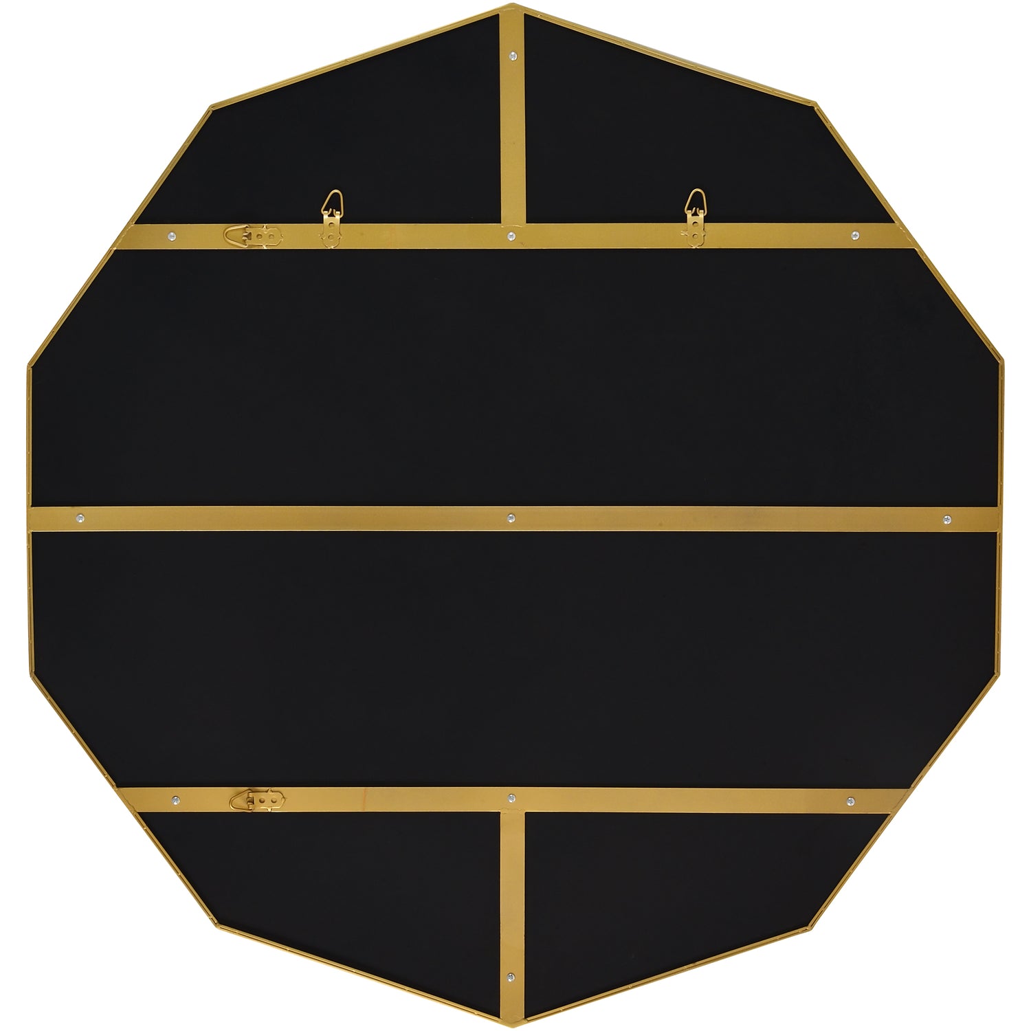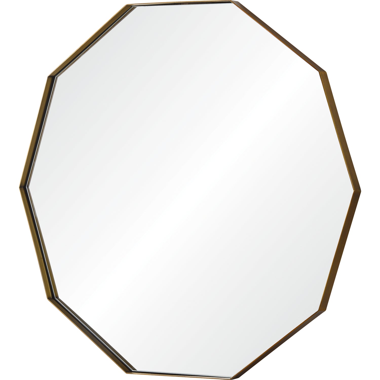 The mid-century powder room interior reaches new heights with this vanity mirror. The antique brass finish brings warmth to the space while the strong angles (10) add a bold quality. Complemented by a vibrant background, it will always remain radiant.