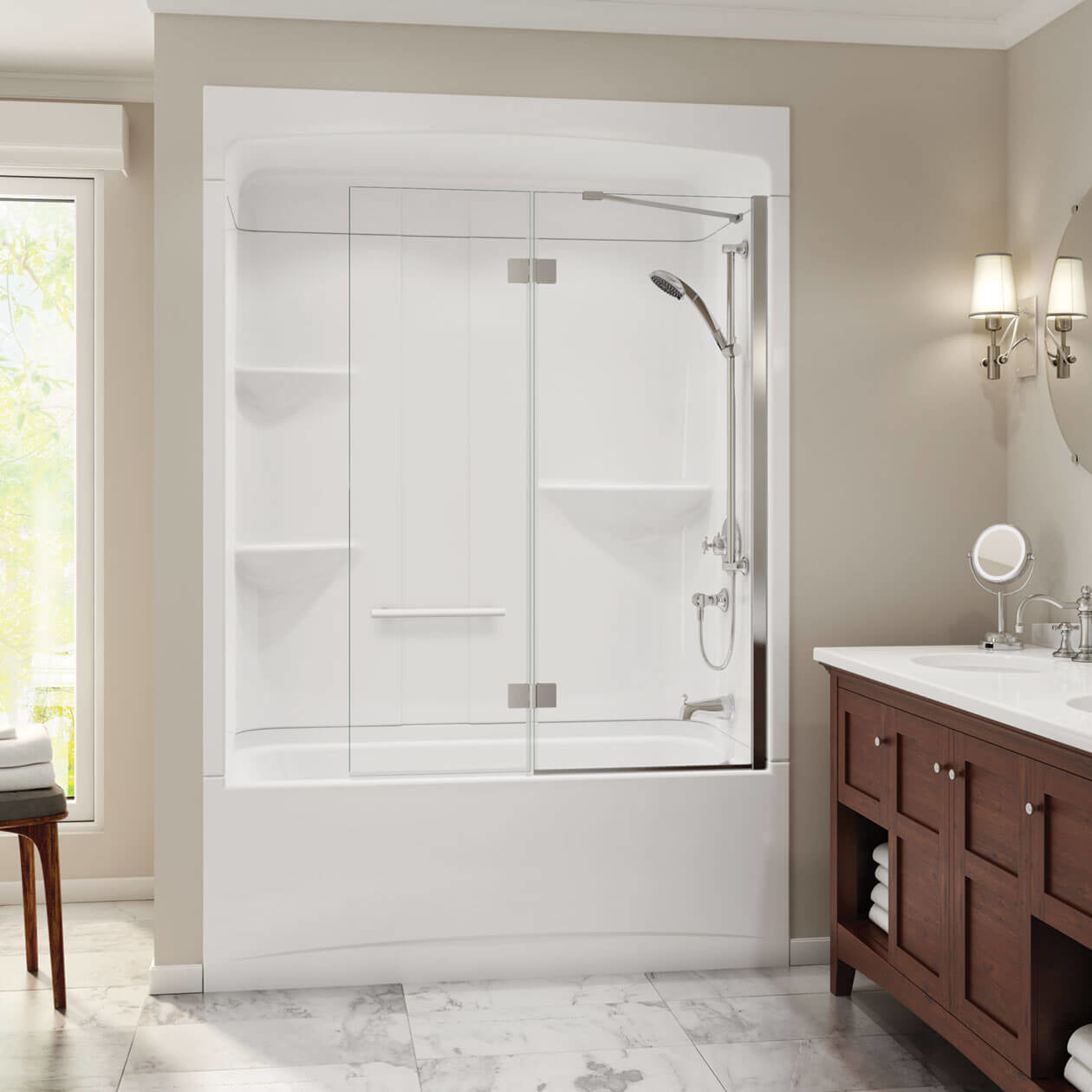 Camelia TSR-6032 Acrylic Alcove Right-Hand Drain Three-Piece Tub Shower in White