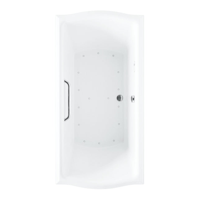 This classic air bath features 16 individual jets with a final purge cycle for each . Fully adjustable remotely controlled functions include normal, pulsating and oscillation. Accented by a chrome-plated solid brass grab bar. Cast acrylic.