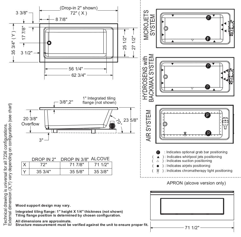 - Unique features: deep bathtub with choice of two deck heights (3/8 or 2 -inch) - This model is the standard 2 inch deck