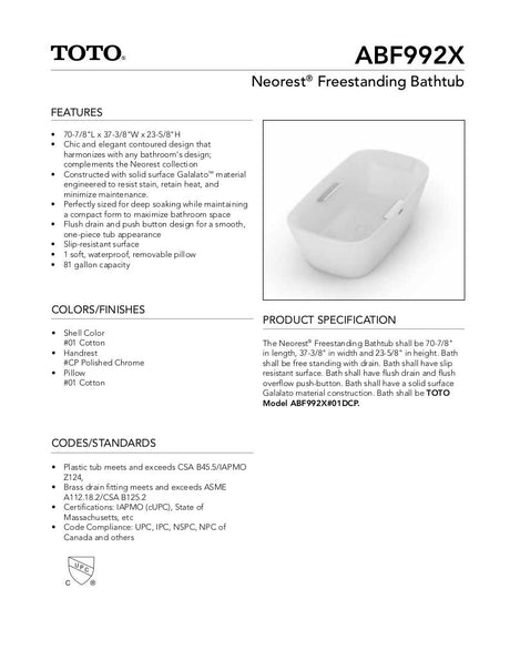 Neorest Freestanding Bathtub