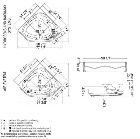 Murmur 5555 Acrylic Corner Center Drain Bathtub in White