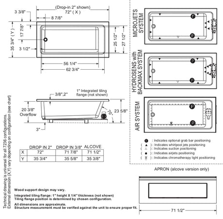 Skybox 7236 Acrylic Drop-in End Drain Bathtub in White