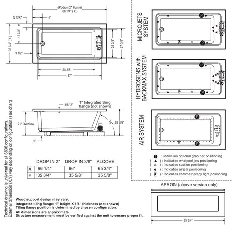 Cocoon 6636 Acrylic Drop-in End Drain Bathtub in White