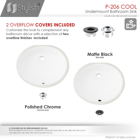 STYLISH 19 inch Oval Undermount Bathroom Sink with Overflow