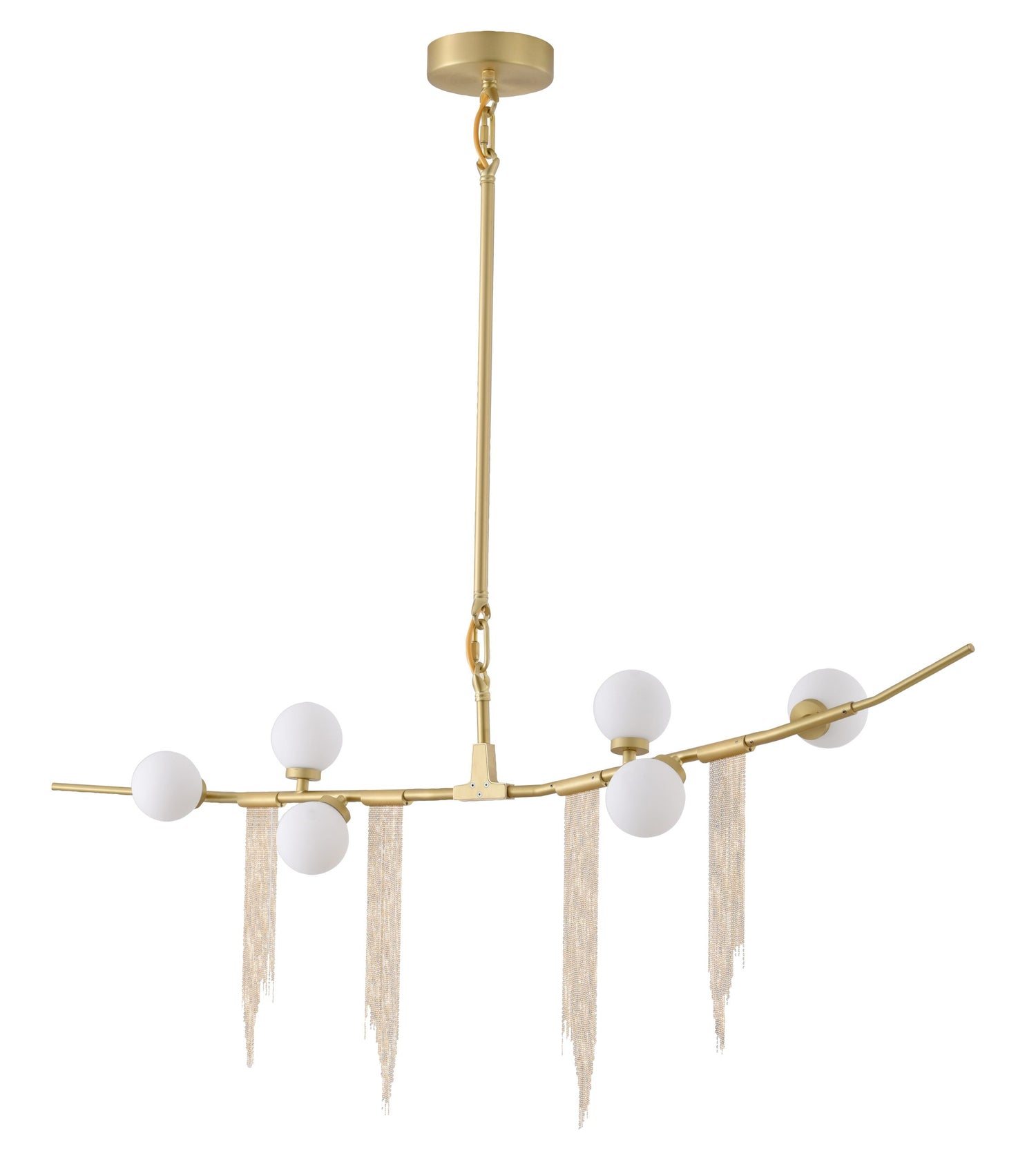 • This chandelier has a gold metal frame