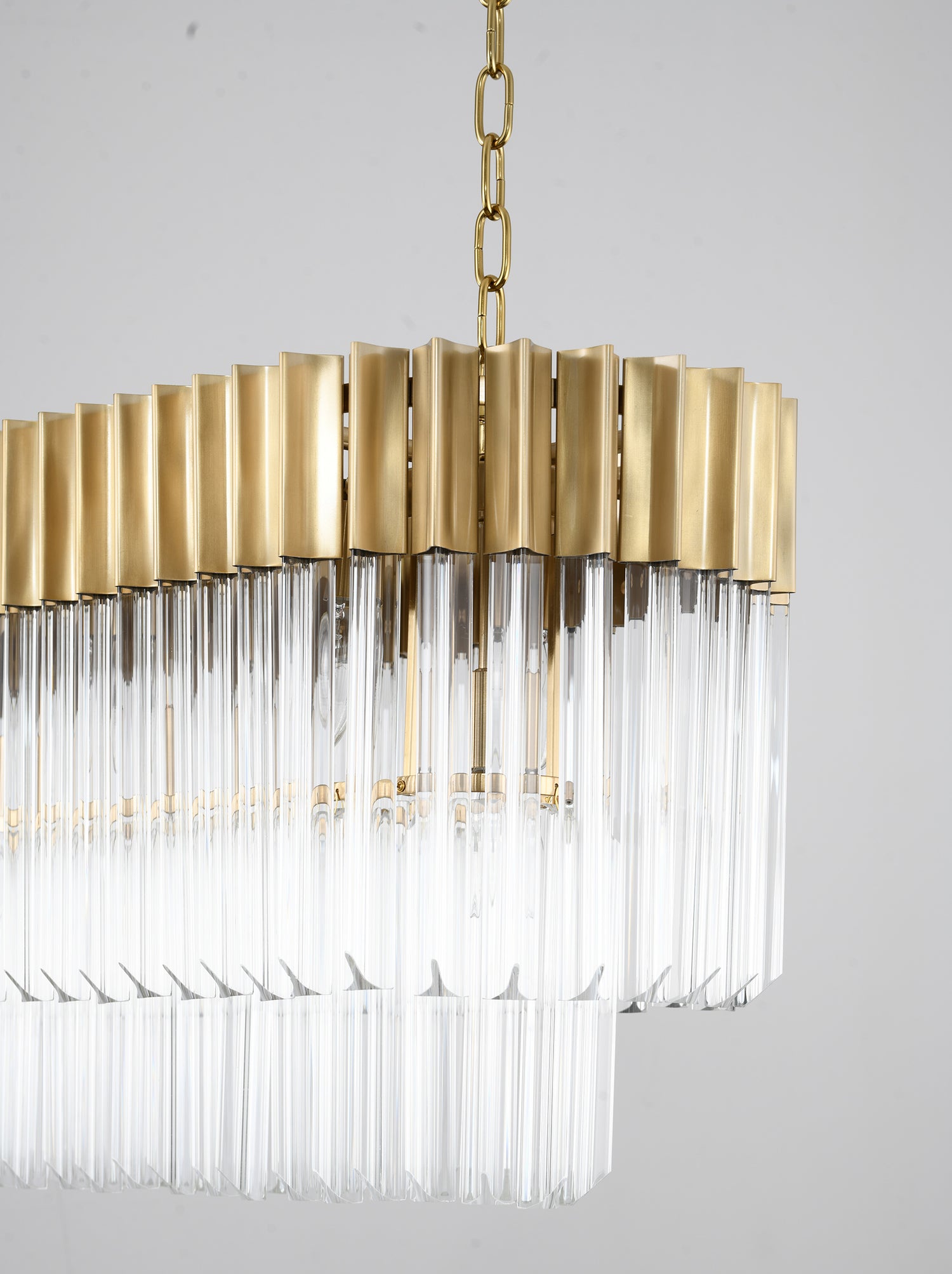 • This fixture is hung by a 59" chain that can be adjusted to your liking.