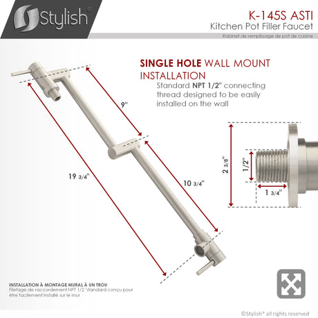 STYLISH Wall Mount Pot Filler Folding Stretchable with Single Hole Two Handles