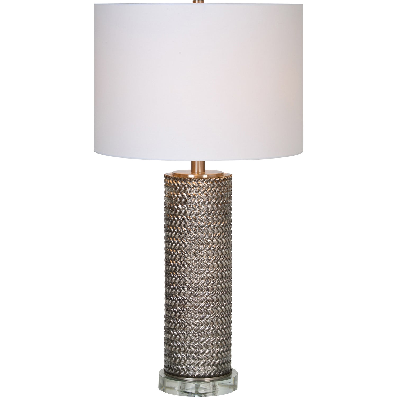 Light and airy, this mercury glass table lamp adds subtle sparkle to your side table. Set upon a crystal base and topped with an off-white shade, the lamp is elegant and sophisticated. The three-way switch allows you to control the ambiance in the room.
