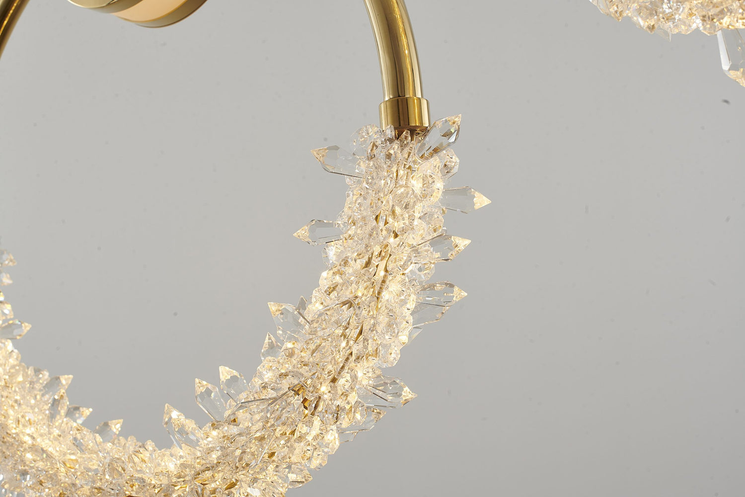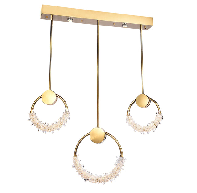 • This modern LED fixture has a gold stainless steel frame