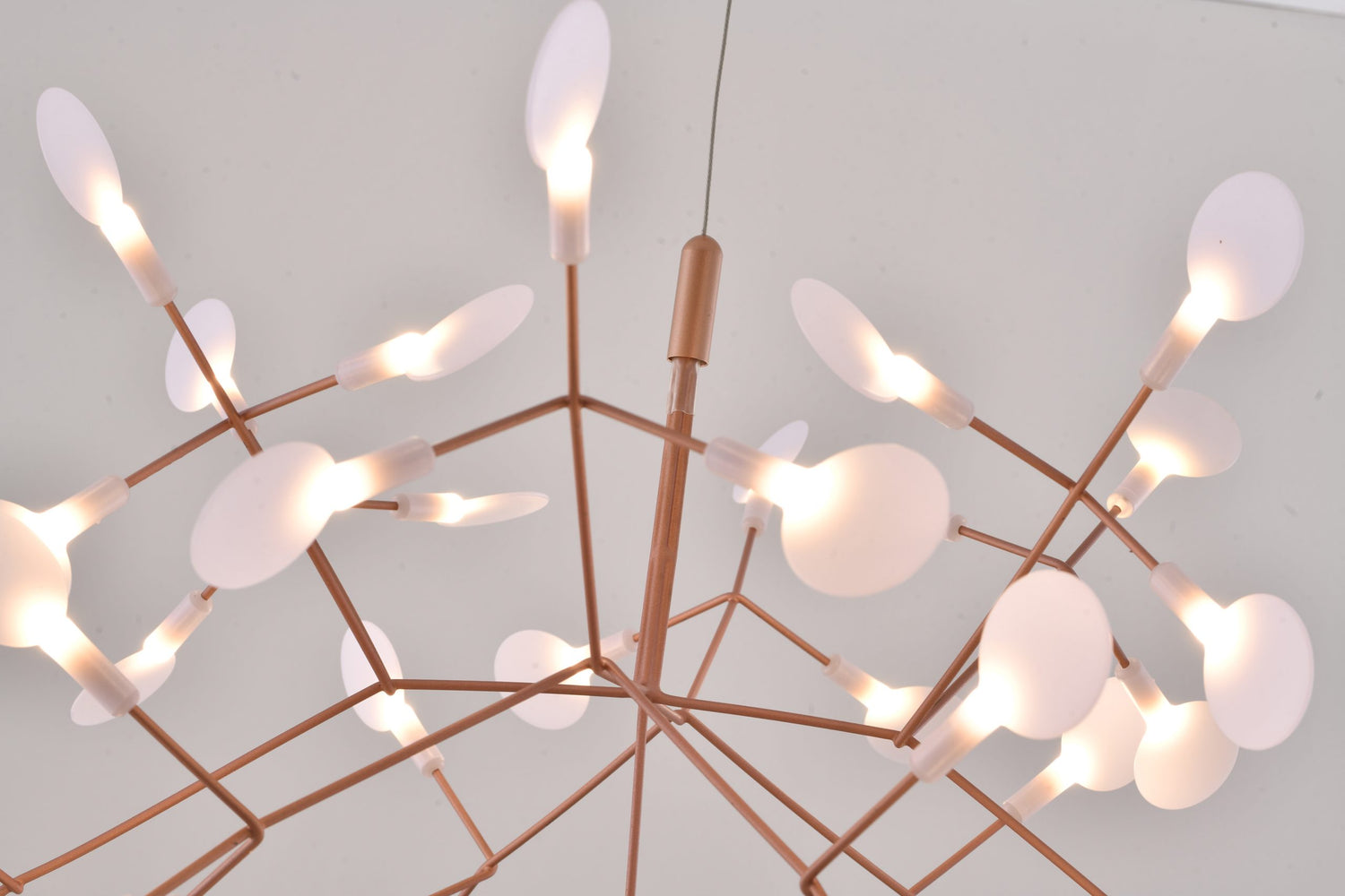 • This exquisite LED chandelier has a matte copper metal frame