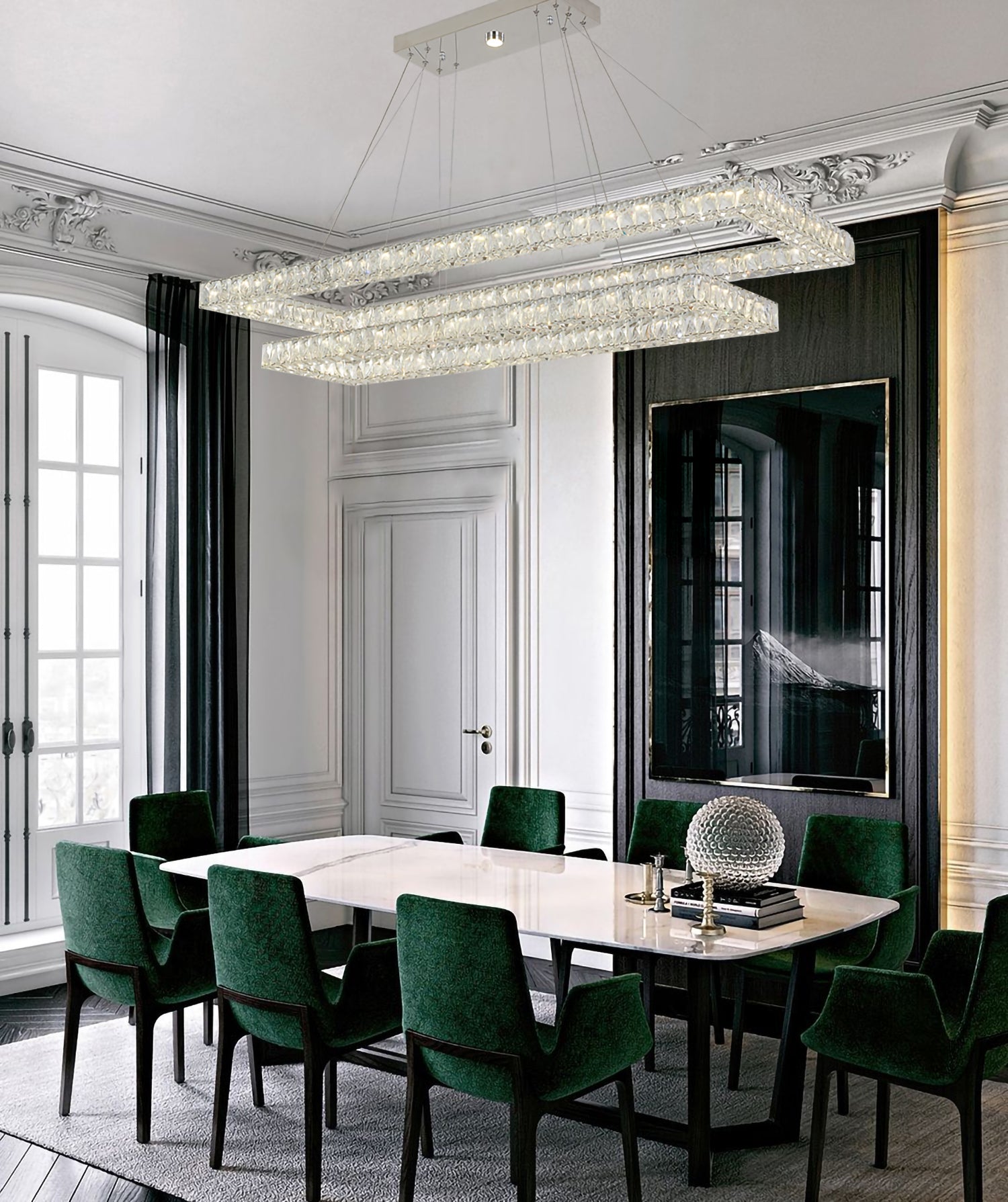 • This two tier LED lighting has a chrome metal finish in a rectangular shape