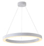 • This LED chandelier has a matte white iron frame