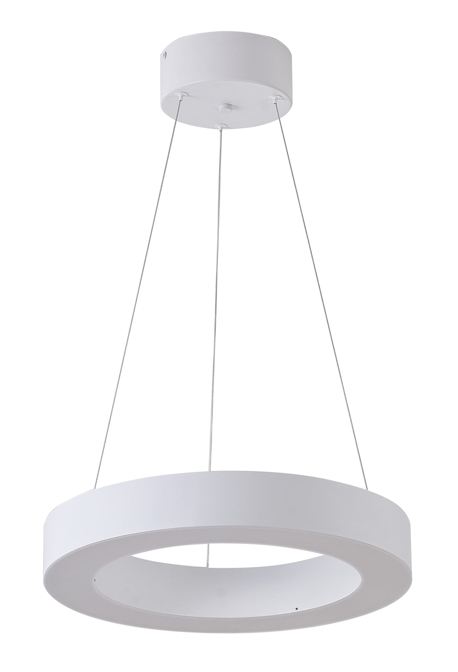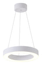 • This LED chandelier has a matte white iron frame