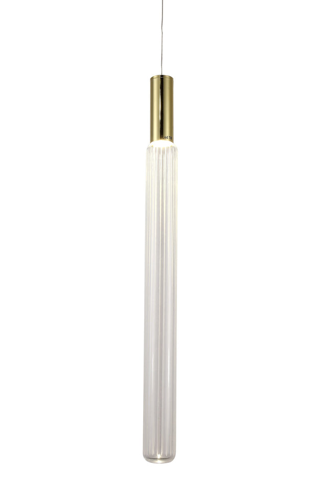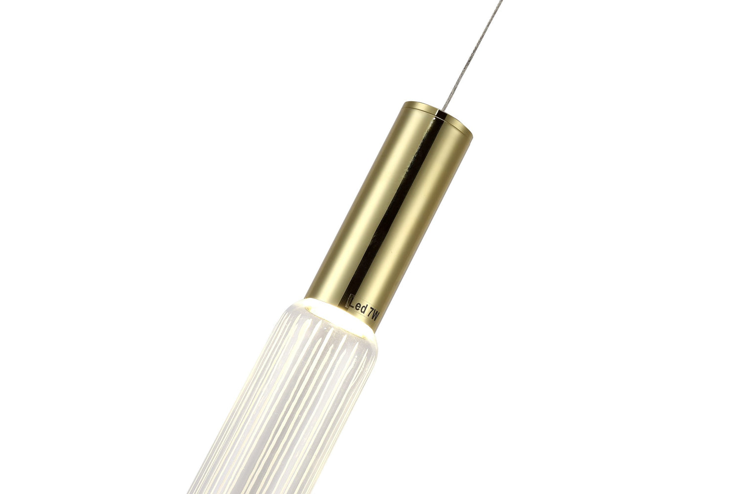 • This LED pendant has a gold metal frame