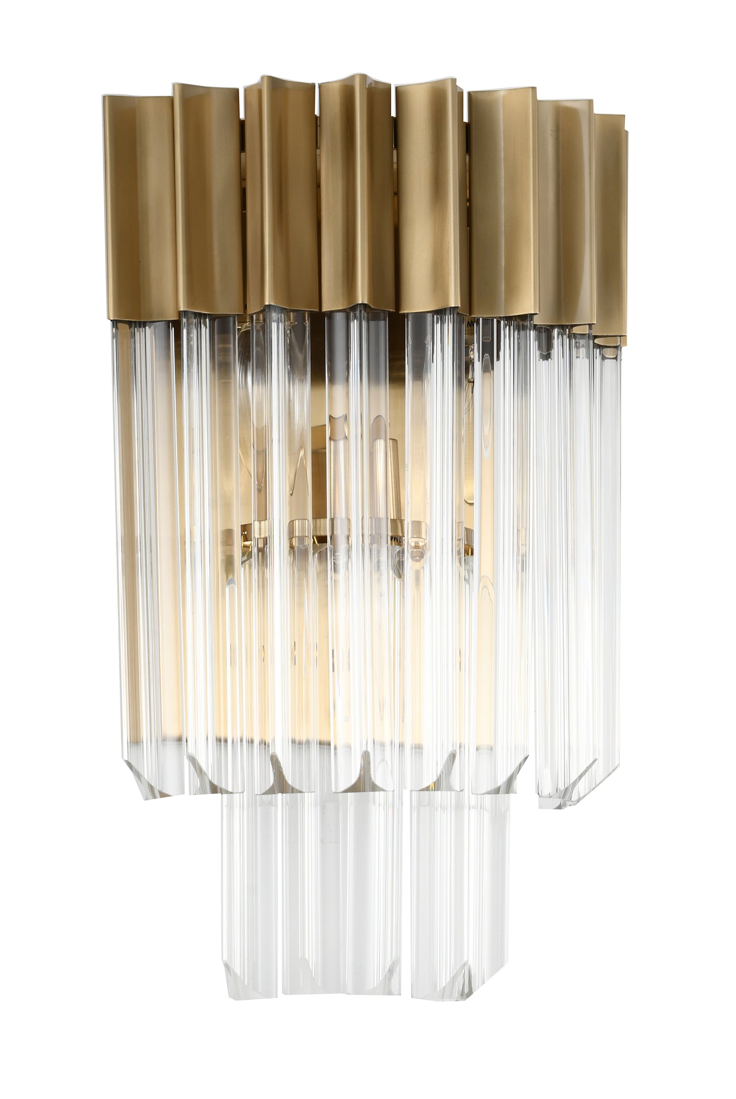• This wall sconce is in a brass finish