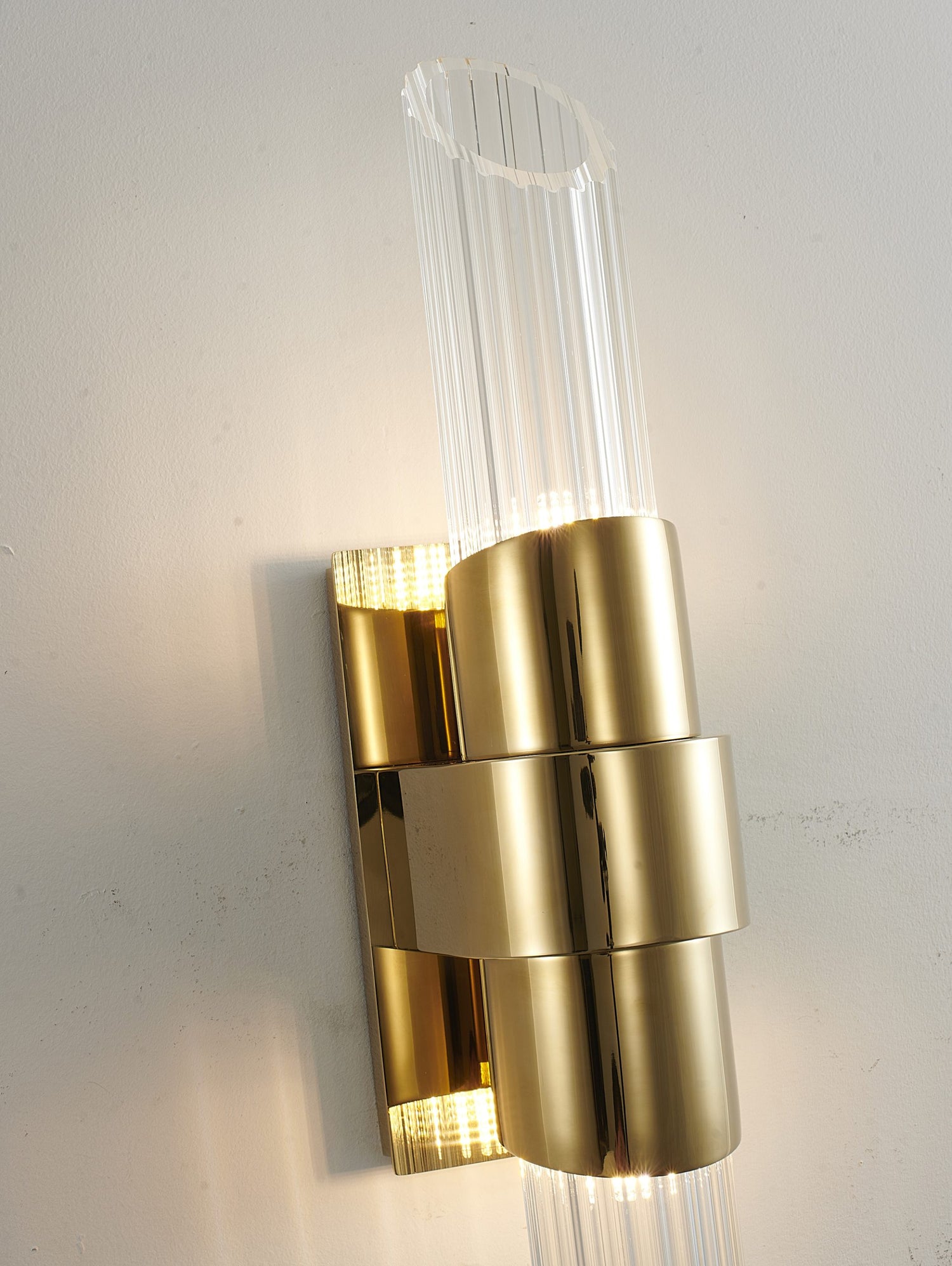 • This wall sconce has a gold stainless steel frame