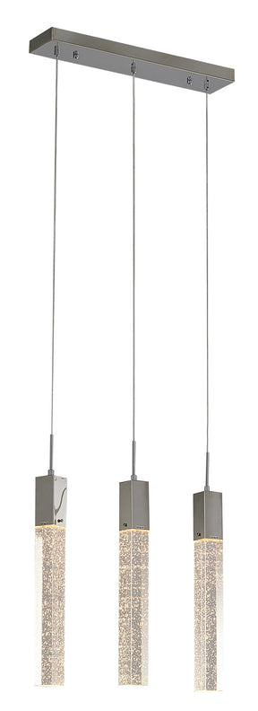 • This island lighting has a chrome metal frame