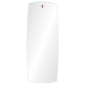 Accessorize modern walls with the minimalist appeal of this decorative wall mirror. A slightly beveled edge enhances the geometric mirror’s full-length rectangular shape and slightly bowed edges while a notch at the top of the looking glass suspends the mirror from the wall by a simple peg. The style is austere, yet elegant – perfect for rooms with an appreciation for simple design forms.