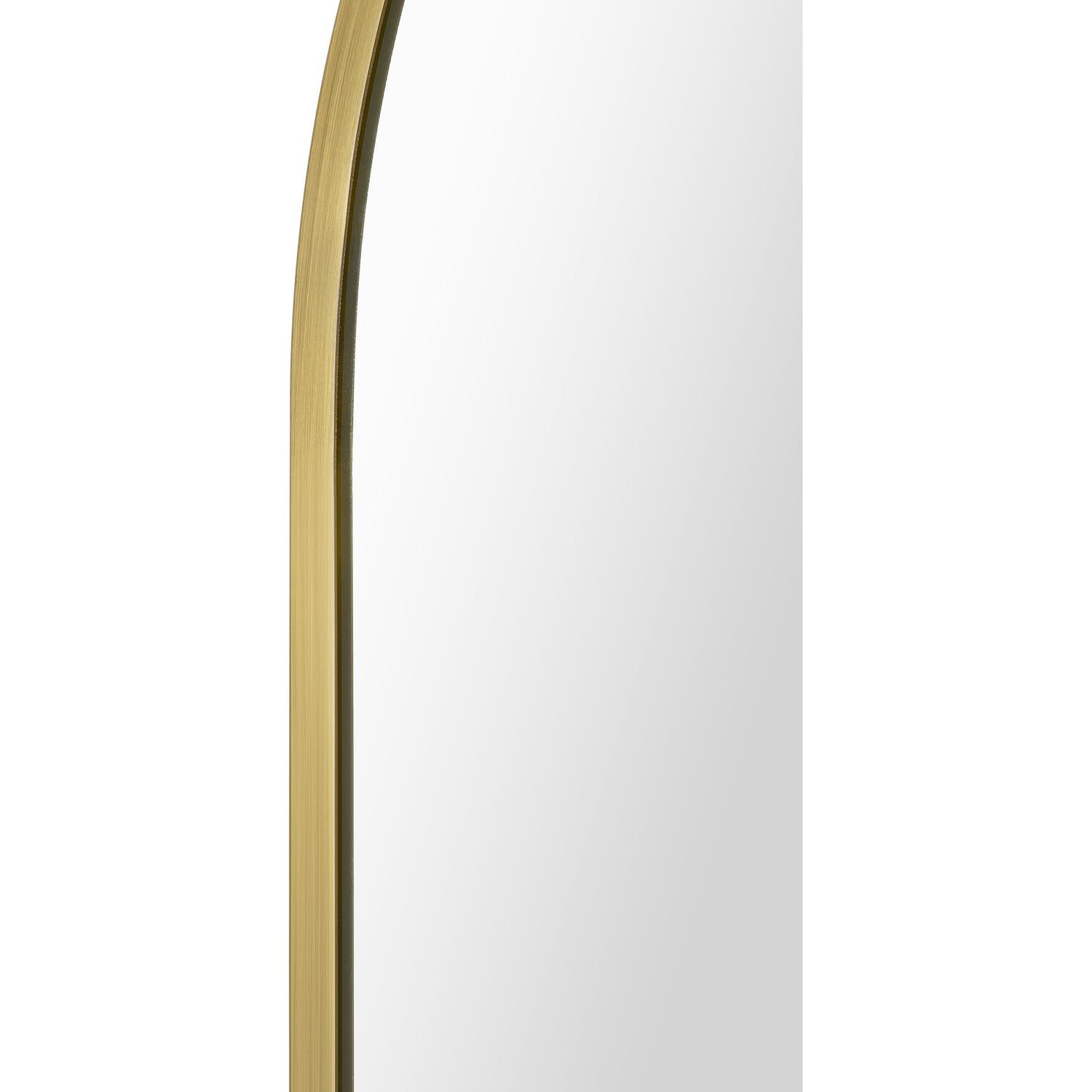 A curving structure adds a formality to the form of this minimal mirror design. With a 24-inch width and 36-inch height, it allows for both hanging and resting above furnishing arrangements. The gleaming satin brass plated iron frame provides a dazzling detail and creates compatibility with contemporary, classic and mid-century modern interiors.