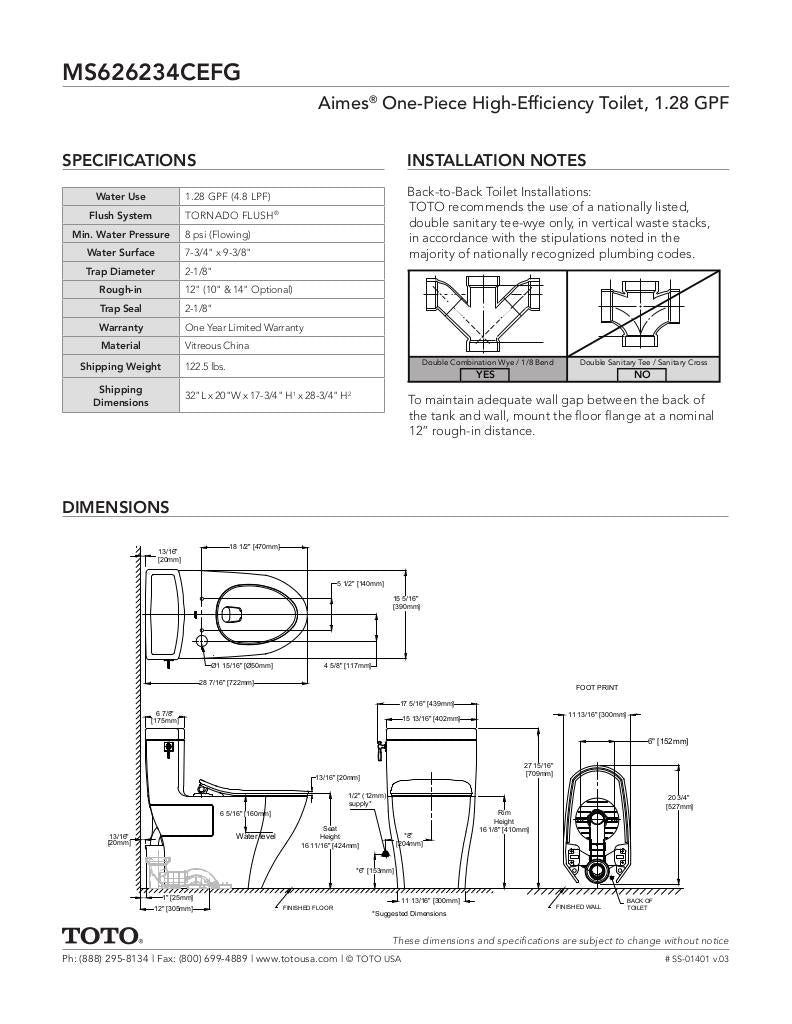 - 12" Rough-In (10" or 14" optional)
