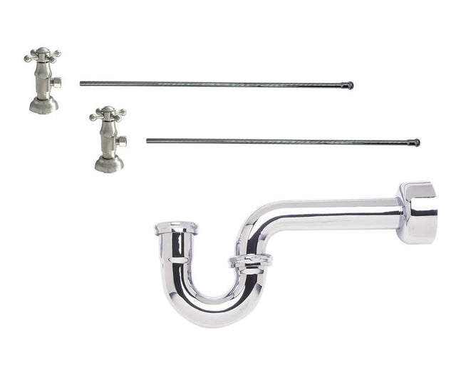 Lavatory Supply Kit - Brass Deluxe Cross Handle with 1/4 Turn Ceramic Disc Cartridge Valve (MT4004X-NL) - Angle, P-Trap 1-1/2"
