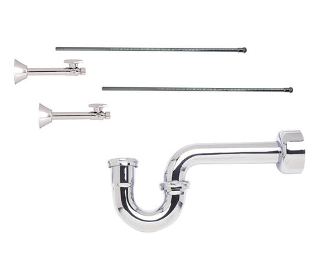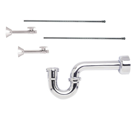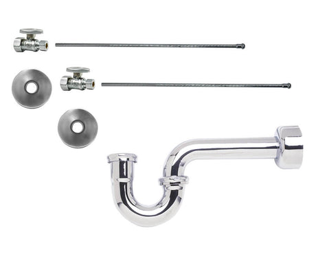 Lavatory Supply Kit - Brass Cross Handle with 1/4 Turn Ball Valve (MT621-NL) - Angle, P-Trap 1-1/2"