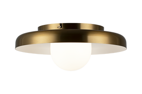 Creston The Creston family is a fun and trendy series sure to catch the eye of everyone. Three sizes of both flush mounts and pendants combined with the wall sconce offers many options to find the exact look you are going for. Available in Aged Gold Brass or Matte Black, both with White interior and Opal Glass. *LIGHTBULBS NOT INCLUDED