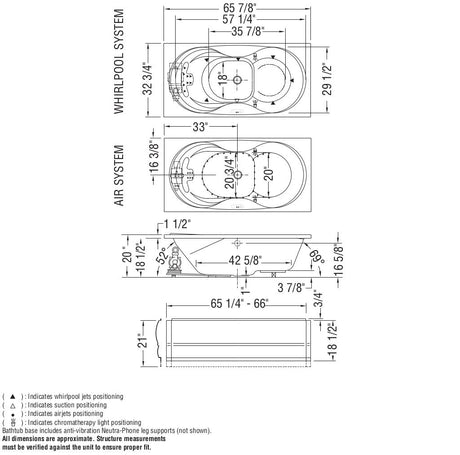 Aiiki 6636 Acrylic Drop-in End Drain Bathtub in White
