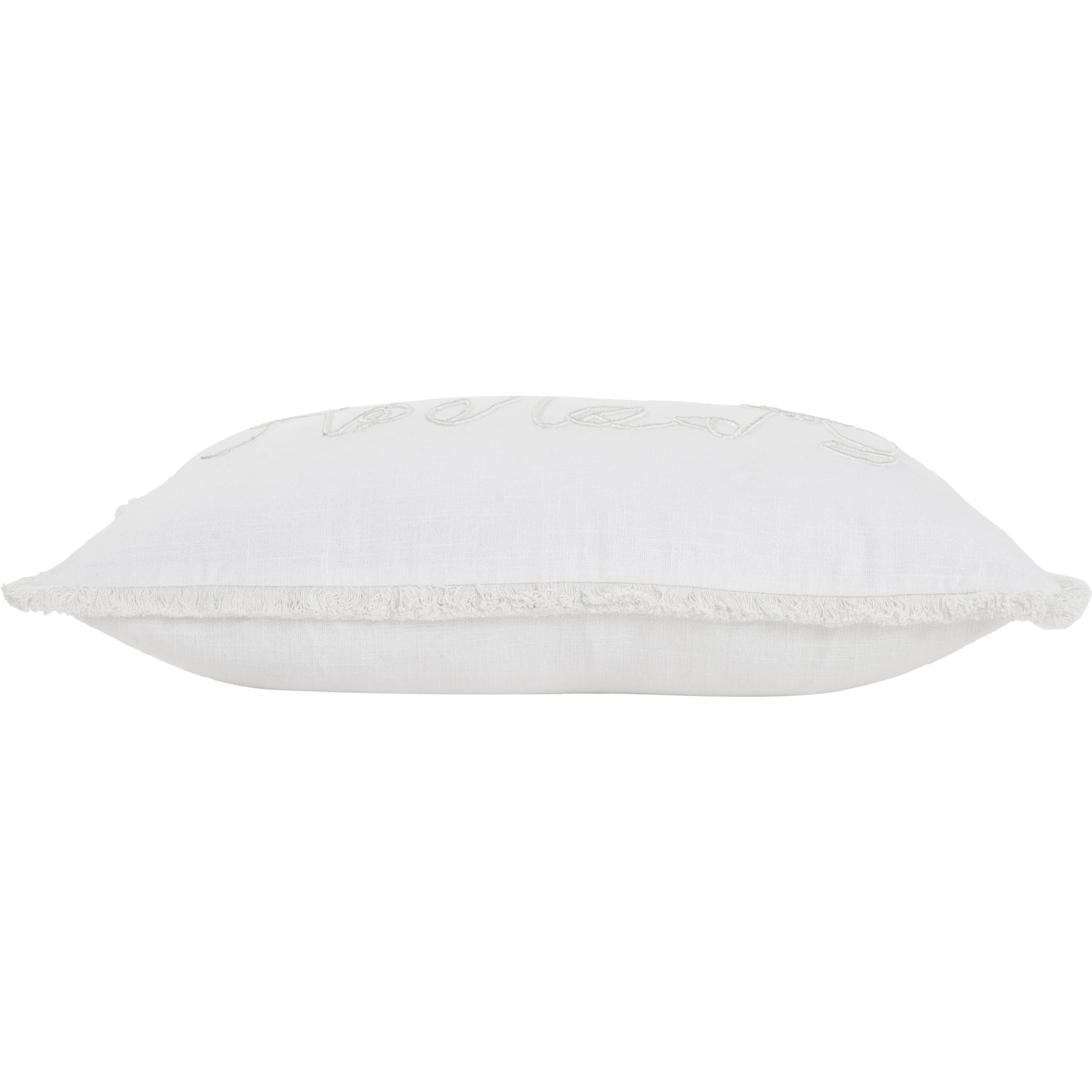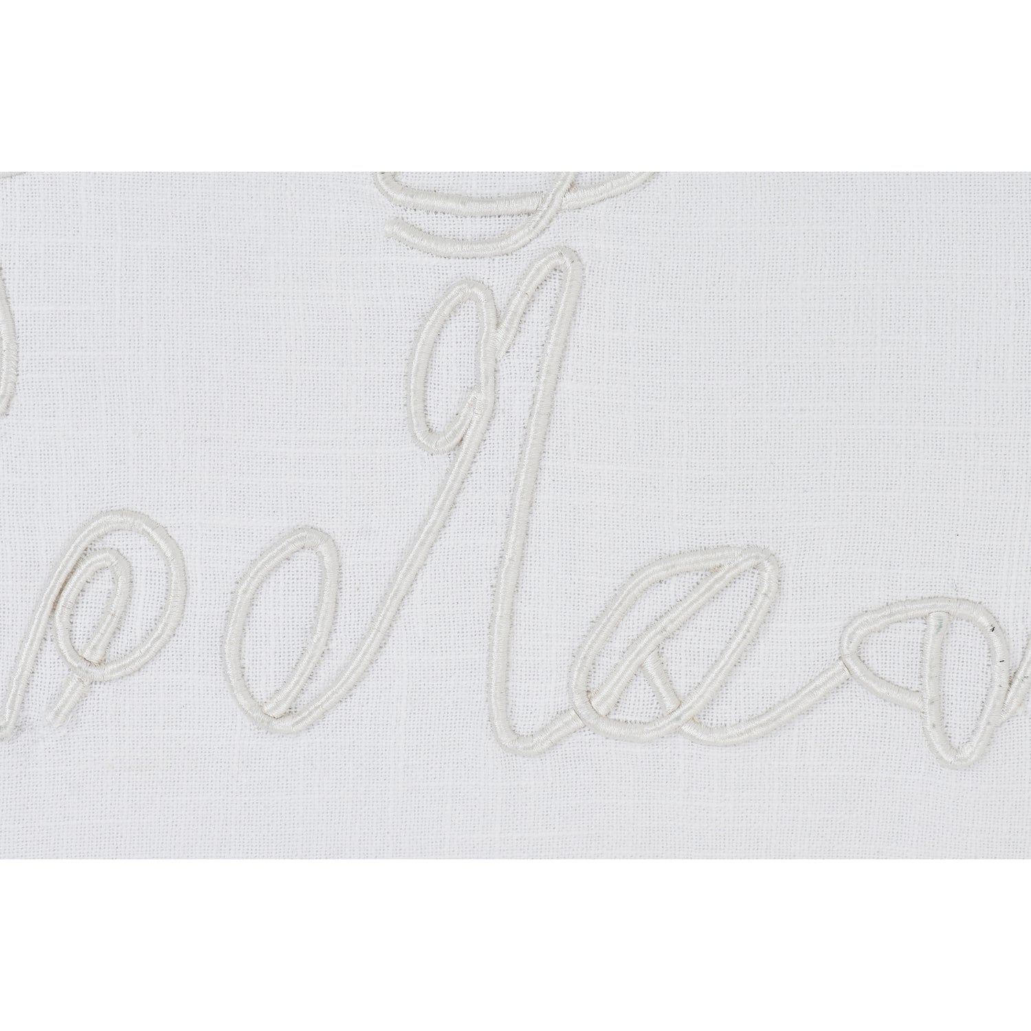 The classic interior takes on a playful appeal with this pillow design. Showcasing intricately embroidered portrait-like designs, set against an ivory cotton canvas, it becomes a key styling piece. At 25 by 15 inches, with a down feather filling, it fits within a bedroom or living room arrangement on a sofa or settee.