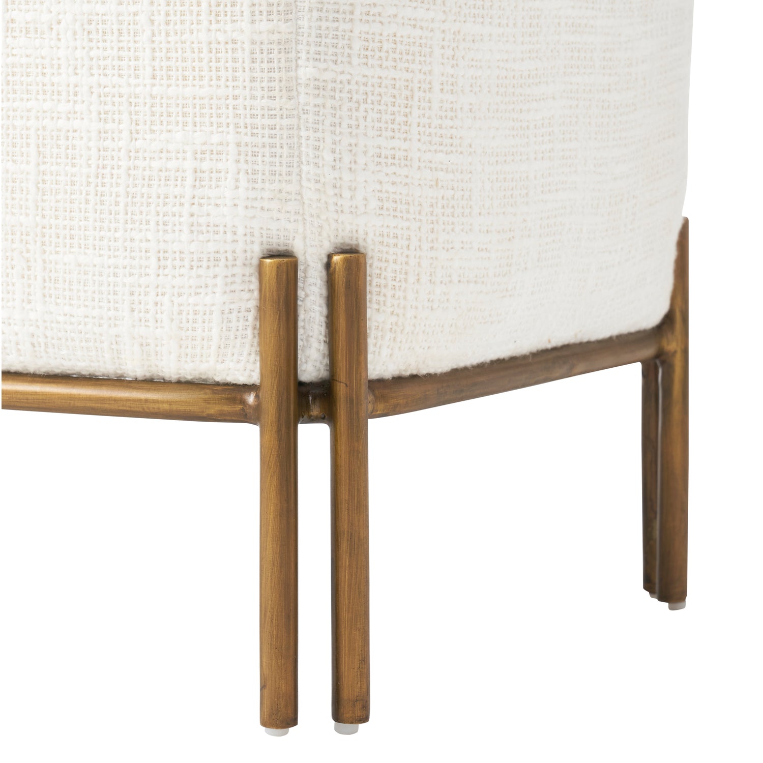 The entryway interior exudes a welcoming energy when this bench enters the space. With a cotton tweed finish and cotton-filled cushion, it is pleasing to the touch and the eyes. Featuring plated iron legs, it is durable for utility and bold in design.