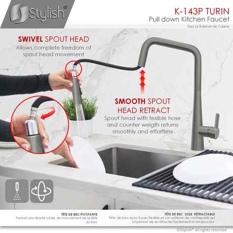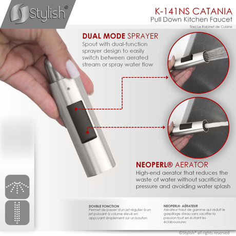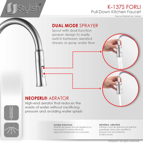 STYLISH Kitchen Sink Faucet Single Handle Pull Down Dual Mode