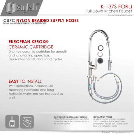 CIT Junior Single Handle Kitchen Faucet Pull-Down Dual Spray