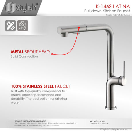 STYLISH Kitchen Sink Faucet Single Handle Pull Down Dual Mode Lead Free