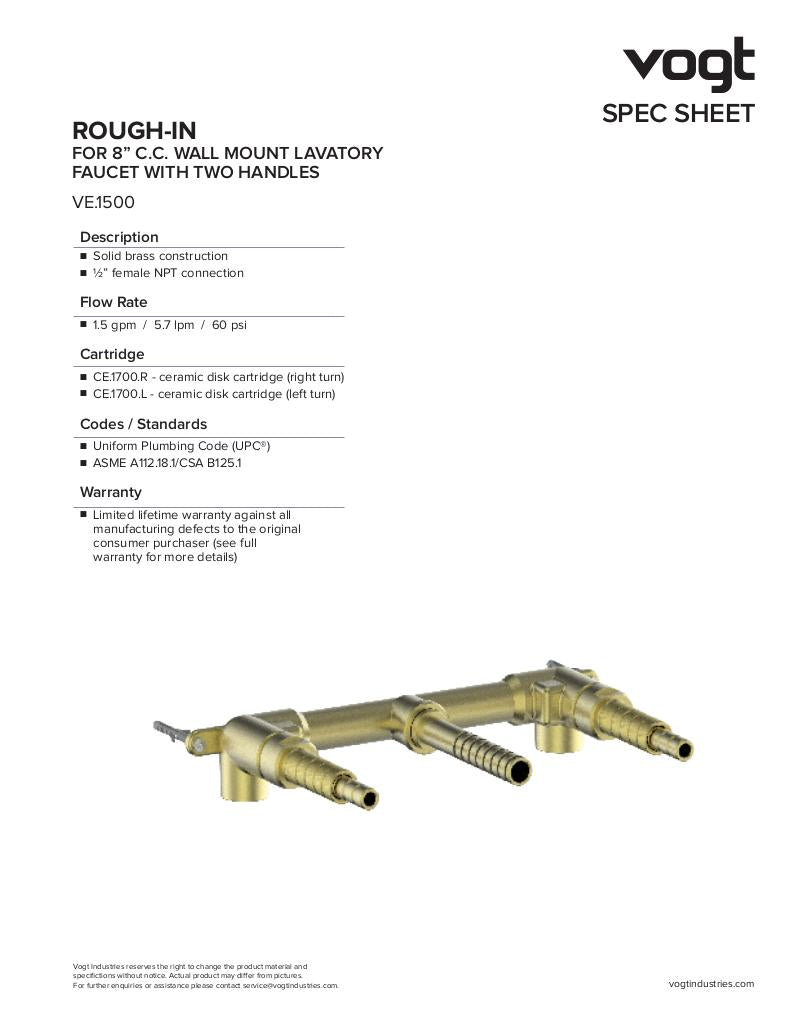 - Adjustable aerator - Ceramic disk cartridge - Rough-in included Flows - 8.3 L/min, 2.2 gpm (US) 60psi Certifications - ASME A112.18.1/CSA B125.1 - NSF 372 - NSF/ANSI 61 - UPC