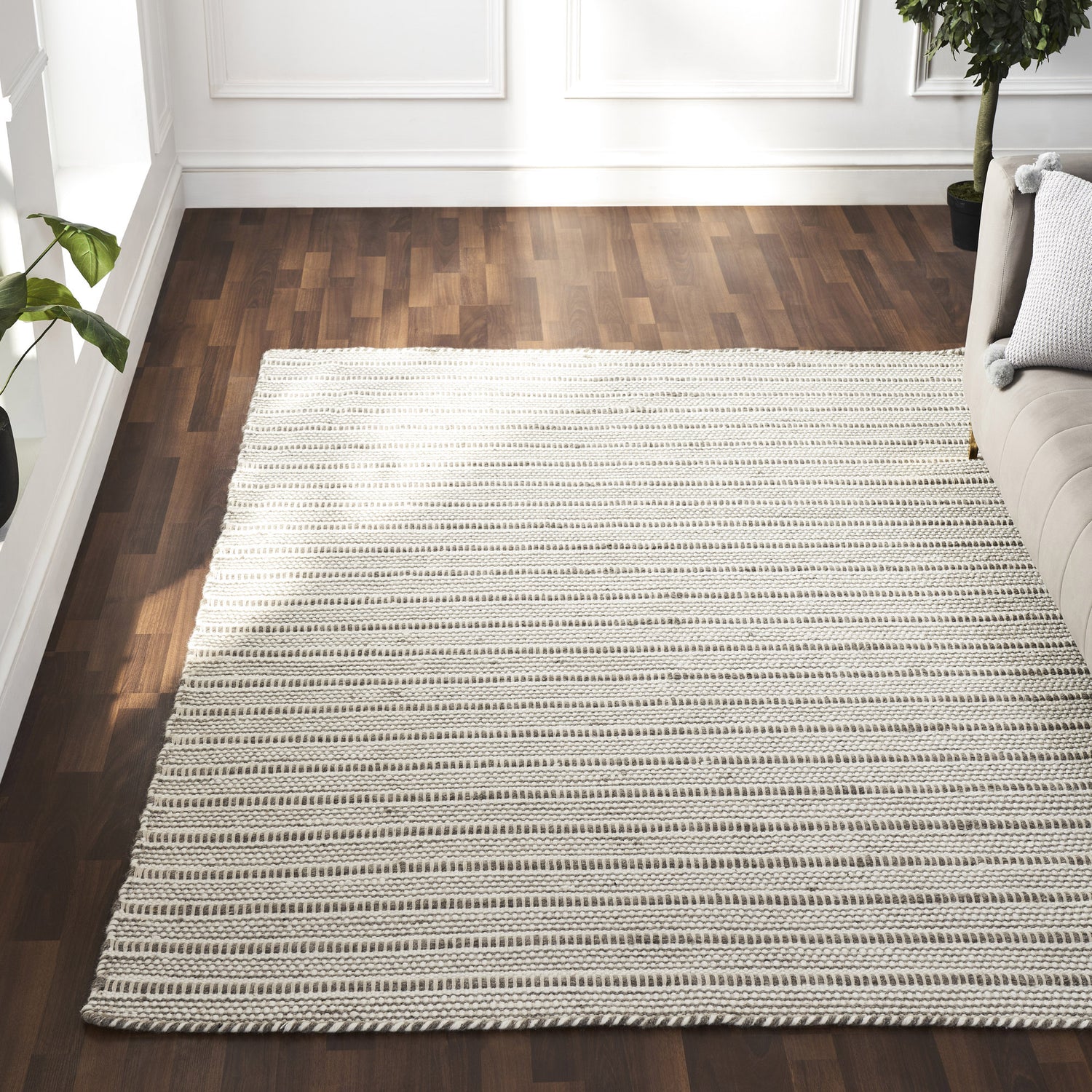 The power of a pattern takes the spotlight in this rug design. Subtle tones of ivory and stone come together to create a cohesive piece that elevates the appeal of the contemporary or classic interior. Hand-woven into six different sizes, the wool and cotton blend brings comfort in any dimension.