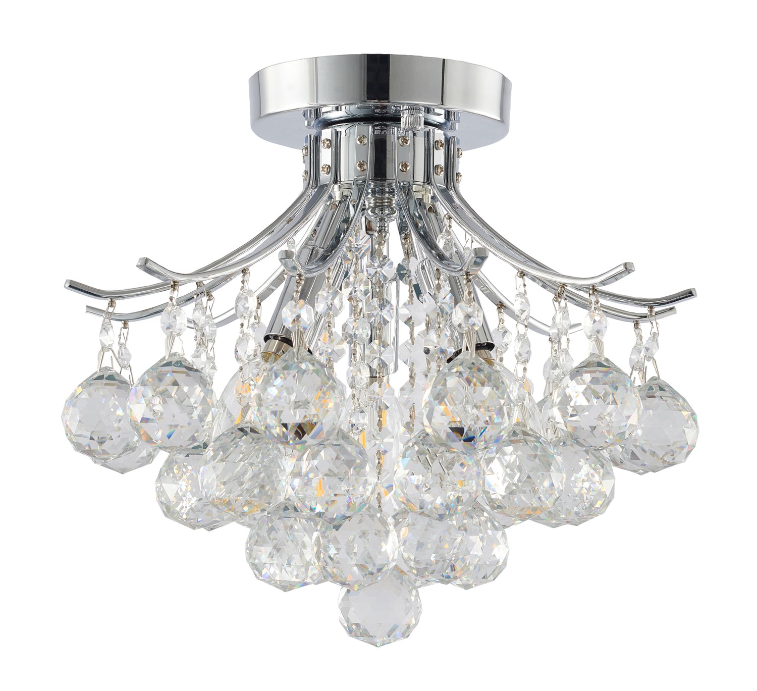 • This semi flush mount is in a chrome finish.