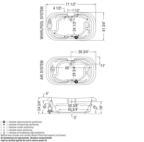 Baccarat 72 x 36 Acrylic Alcove End Drain Bathtub in White