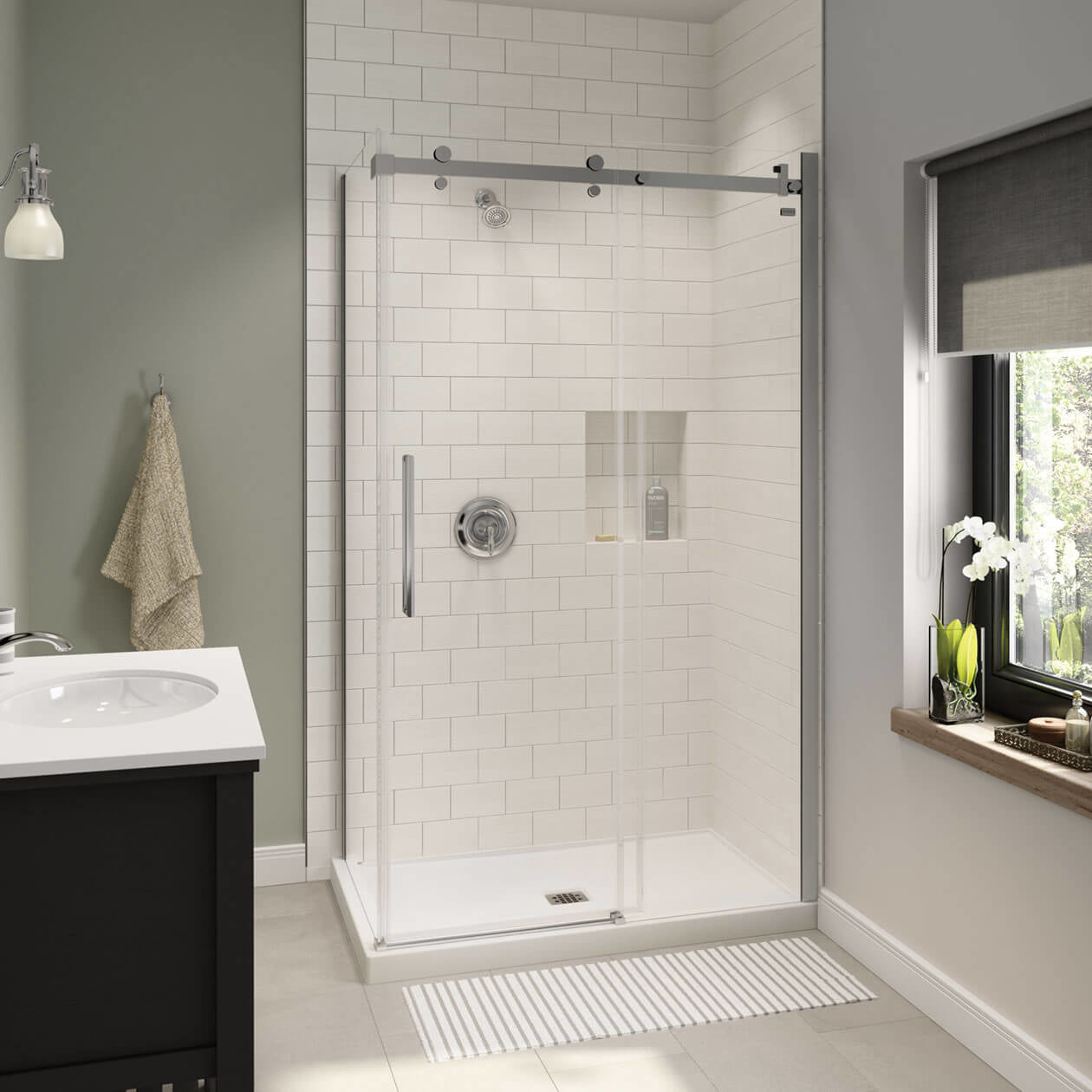 - Square chrome grid and ABS drain included (Upgrade PVC Option available)