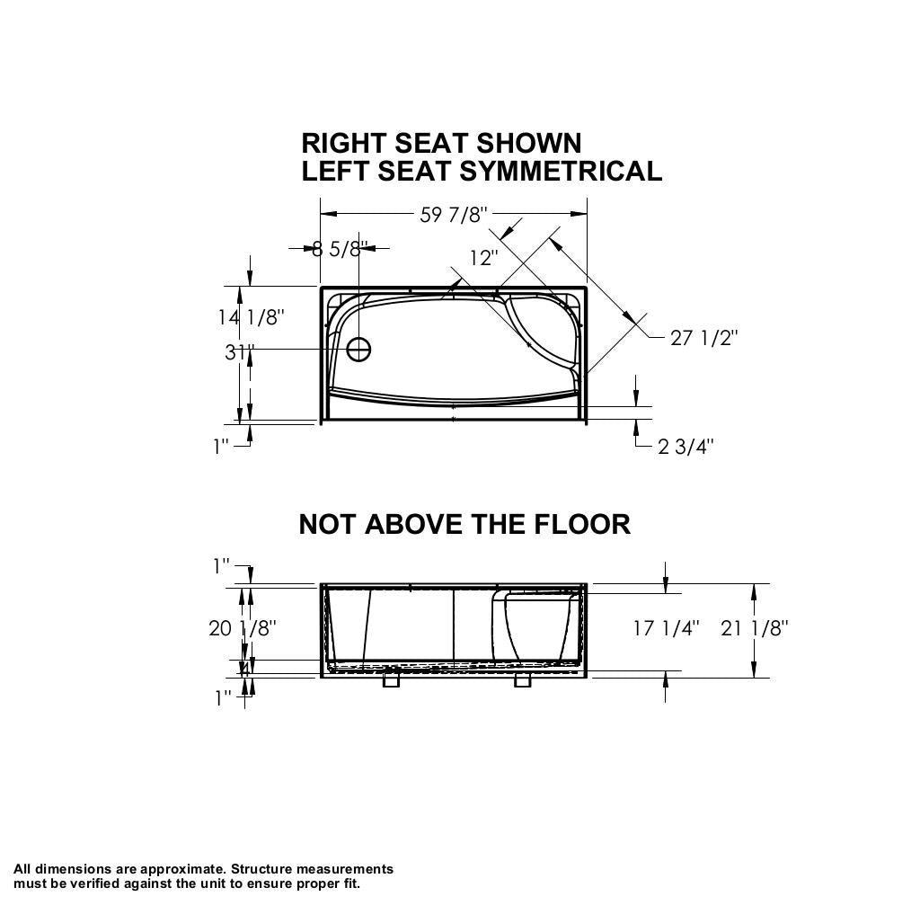 - Center, left or right drain configuration